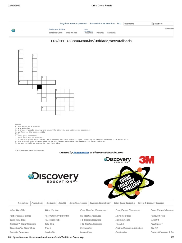 Criss Cross Puzzle Pdf Criss Cross Puzzle Forgot Username Or Password Passcode Create New User Solutions For Districts What We Offer Free Resources Course Hero
